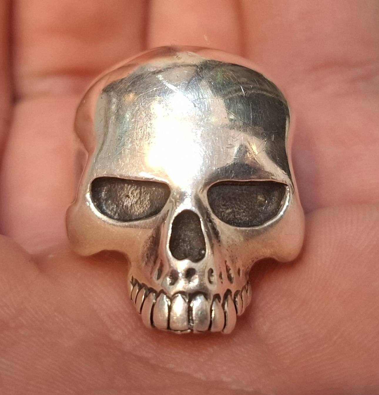 Solid sterling silver, Keith Richards style, huge anatomical sterling silver skull ring. Memento Mori, Day Of The Dead, Mexican biker ring. Handmade in the YGTS workshop.