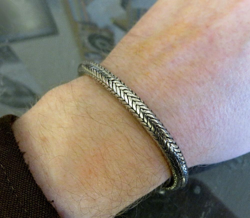 Beautiful, vintage mid century, Rajasthani Indian silver snake chain, (sterling silver) bracelet.