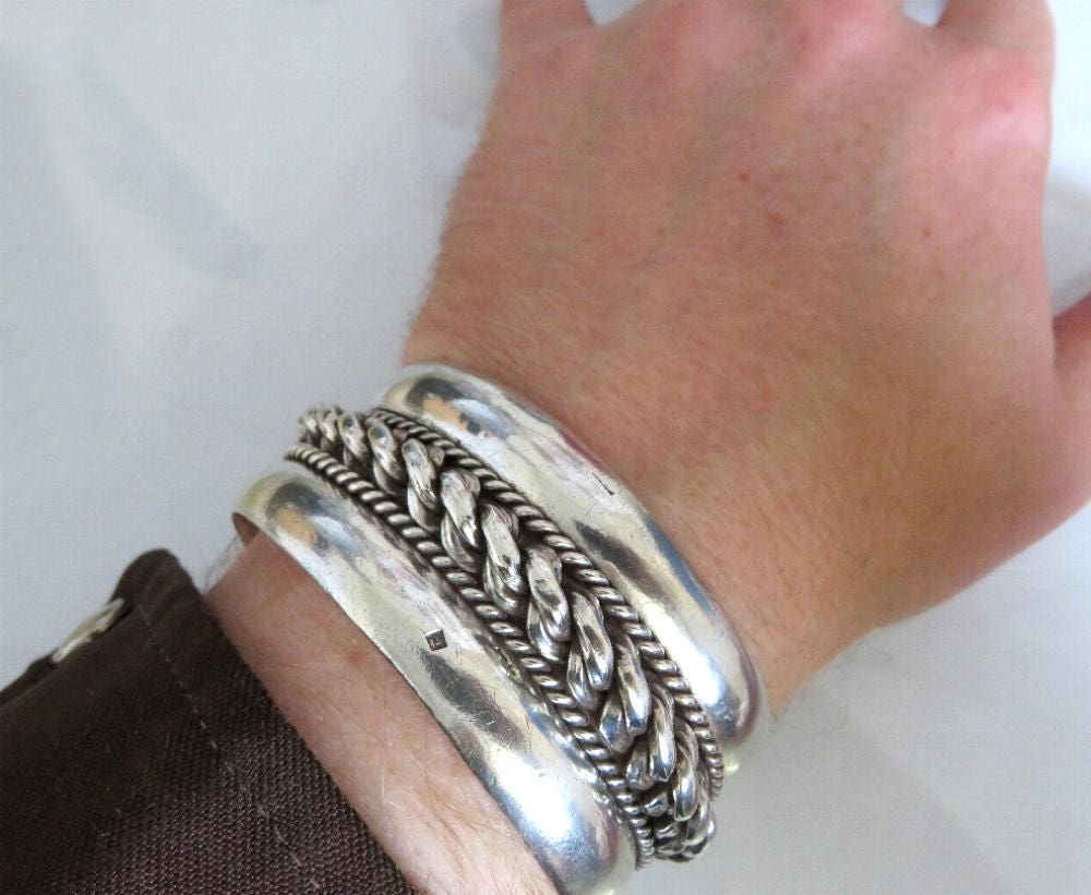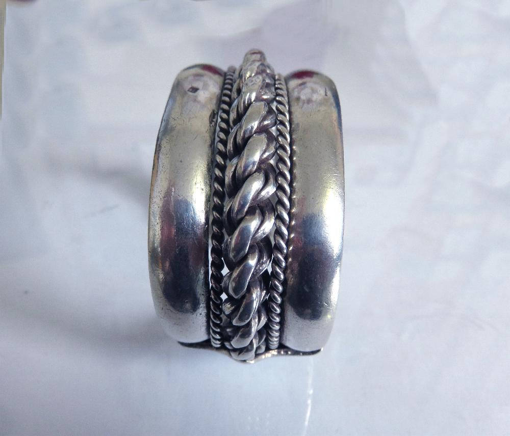 Beautiful Bedouin silver bangle cuff from the Sinai with the typical twisted roping sandwiched between two layers of silver. they were commonly worn in pairs one on each wrist.