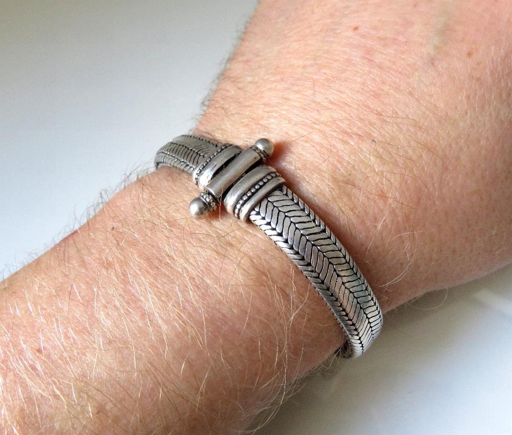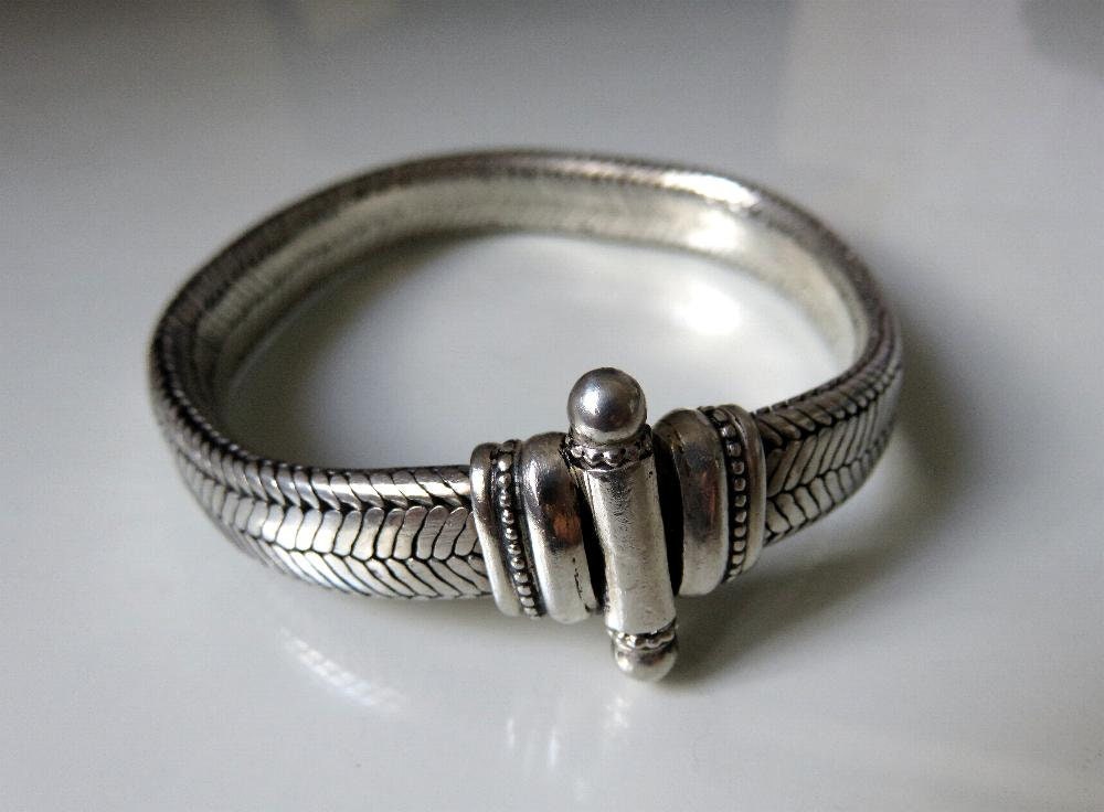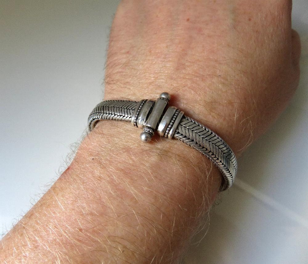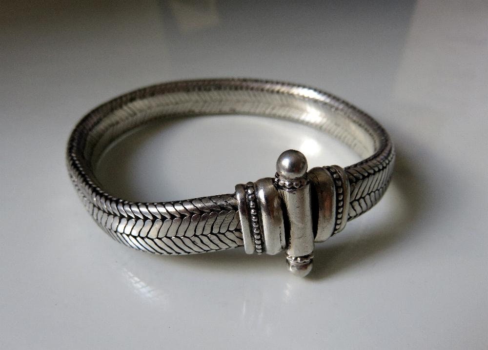Beautiful, vintage mid century, Rajasthani Indian silver snake chain, (800 silver) bracelet.