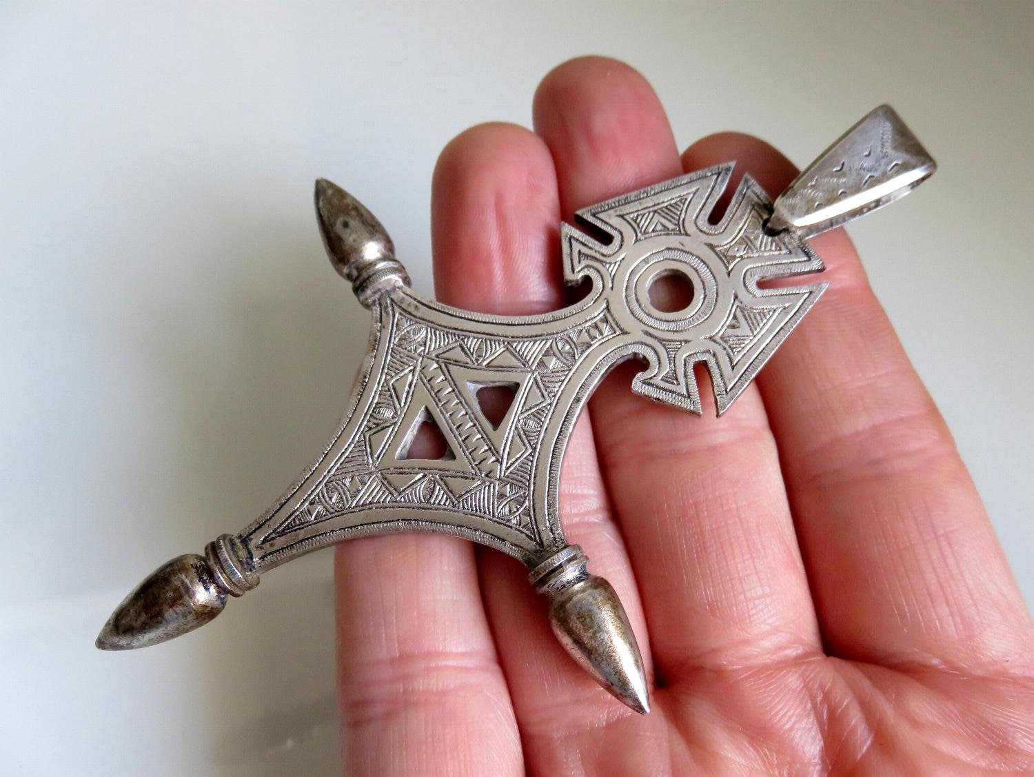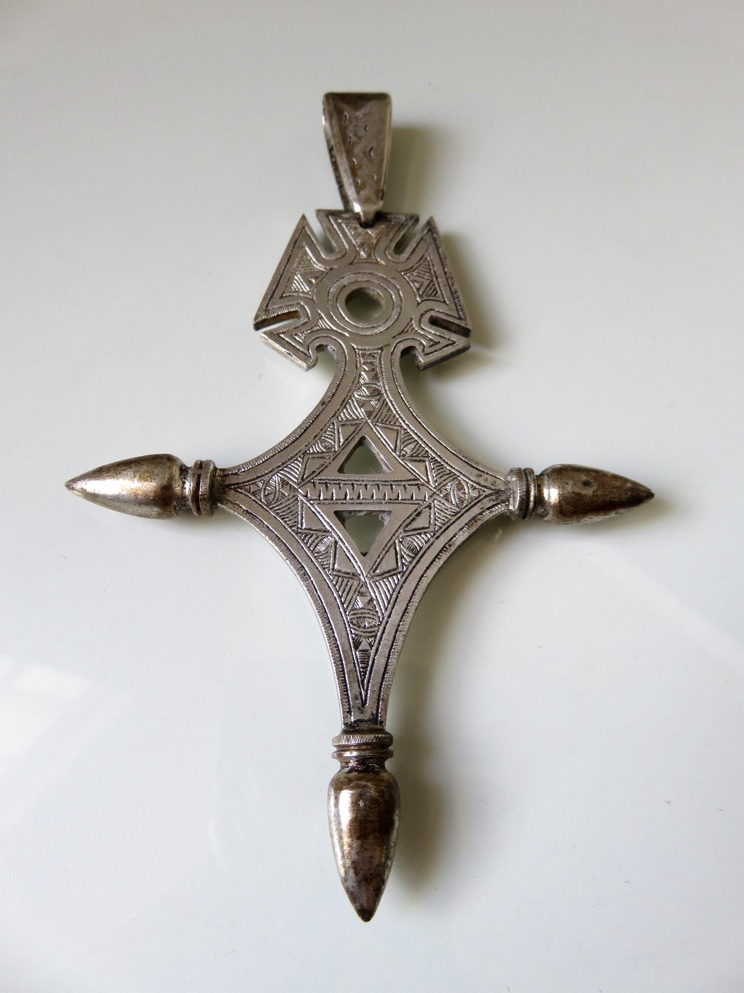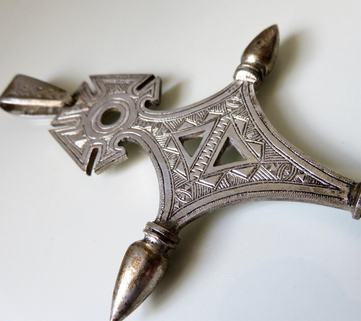 Stunning, large 900 silver Bedouin Tuareg cross amulet. Beautiful engraved marking and design.
