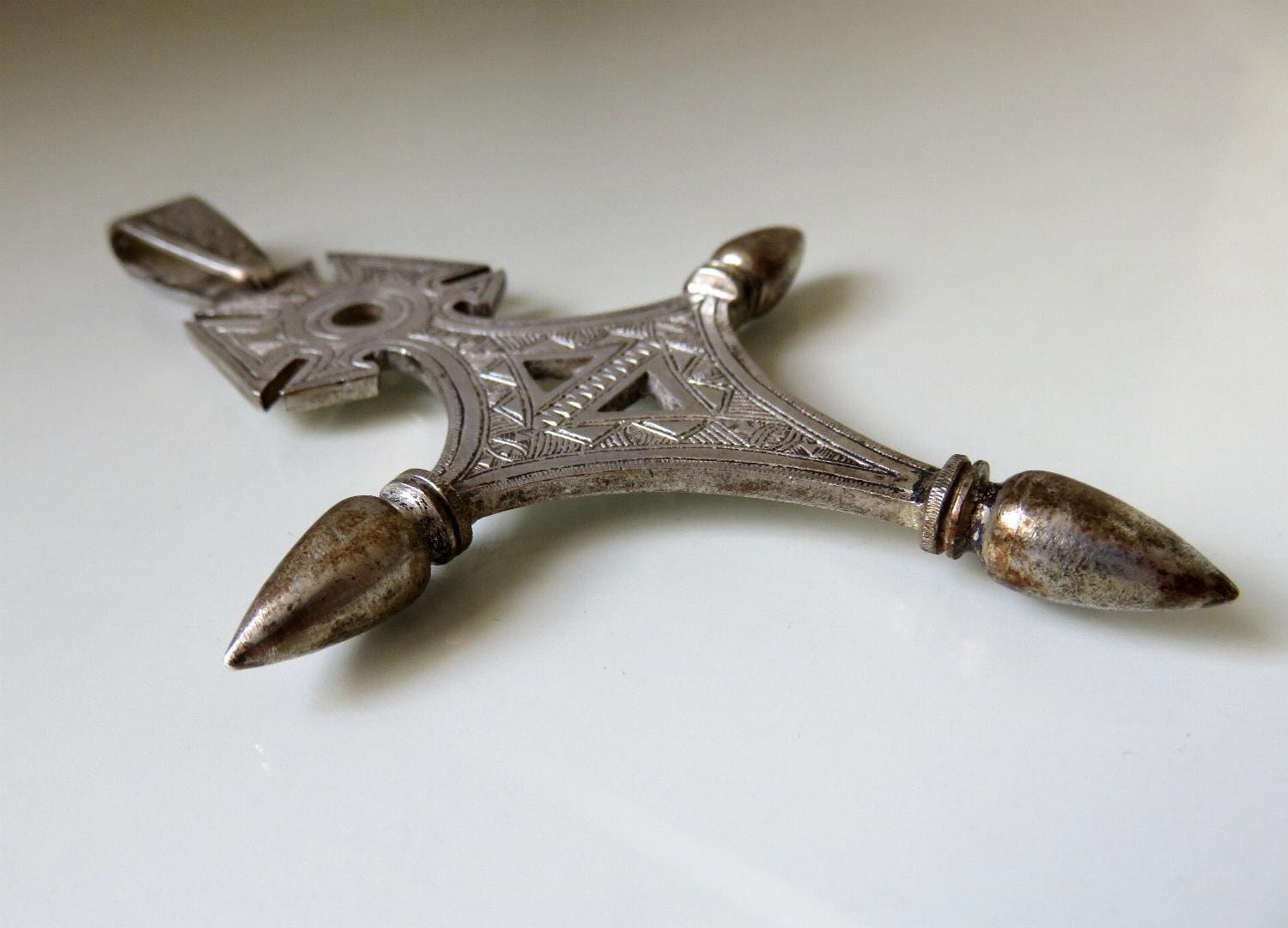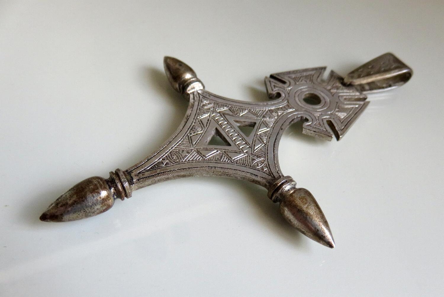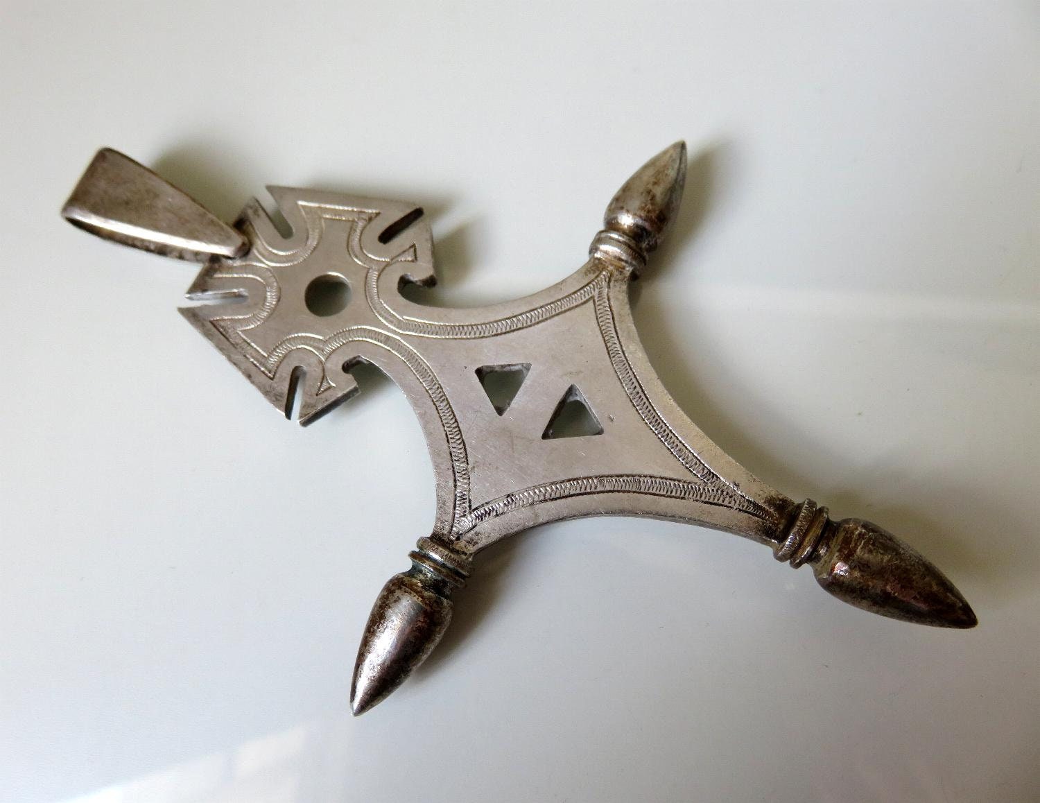 Stunning, large 900 silver Bedouin Tuareg cross amulet. Beautiful engraved marking and design.